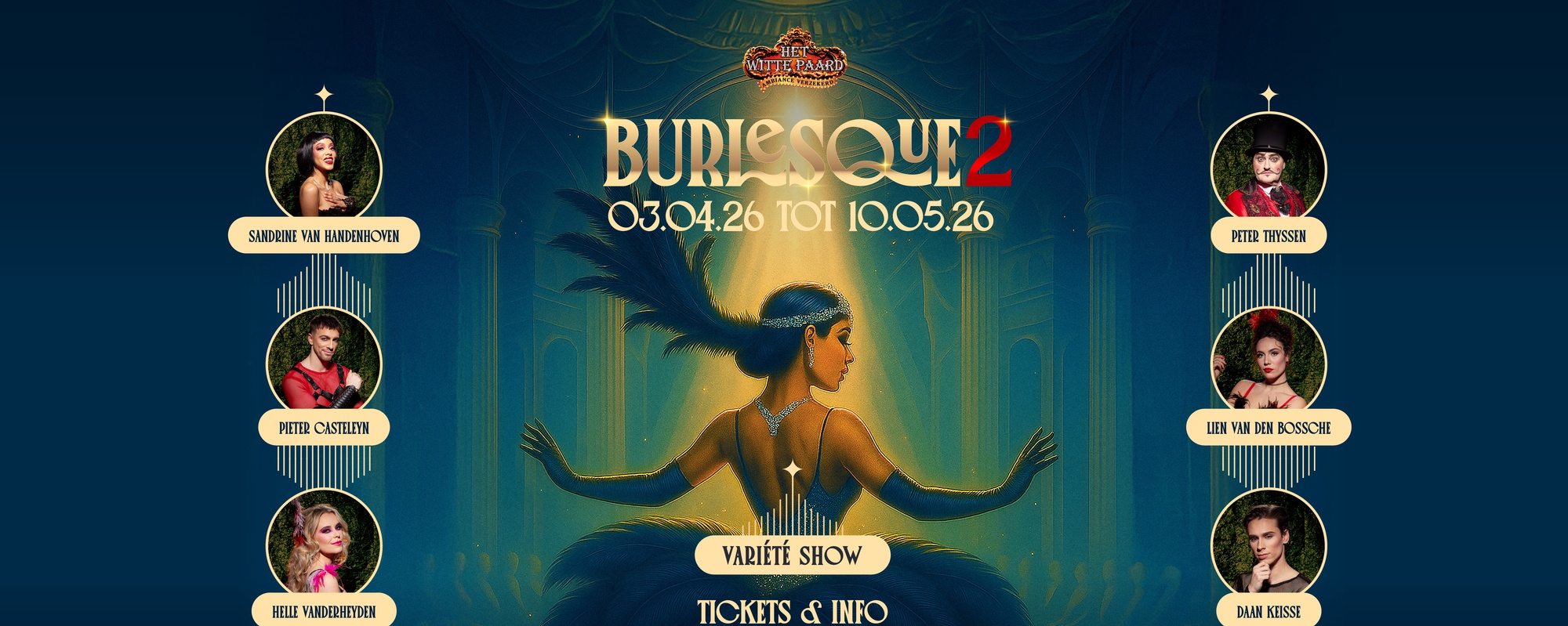 Na het overweldigende succes van vorig jaar keert de pikantste show van Witte Paard Productions terug. Maar verwacht geen simpele herneming. ‘Burlesque 2’ is een nieuw verhaal, een nieuw hoofdstuk, even crazy, verleidelijk en verrassend als de wereld waarin het zich afspeelt. Ook wie de vorige show niet zag, wordt moeiteloos meegezogen in dit nieuwe avontuur.
